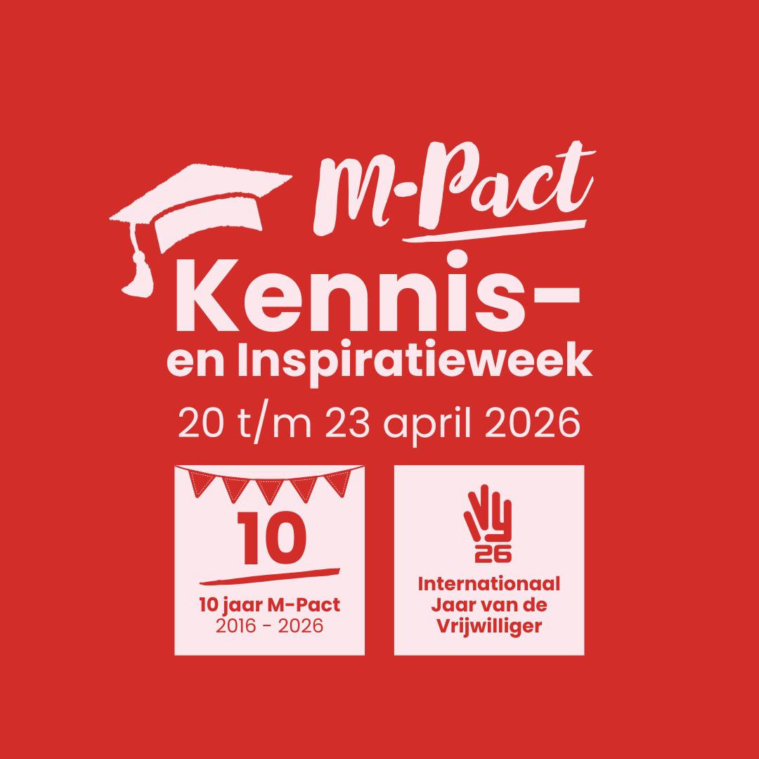 Dit jaar is het dubbel feest: M-Pact bestaat 10 jaar én het is het internationaal jaar van de vrijwilliger. Daarom organiseren we een kennis- en inspiratieweek vol nieuwe inzichten, praktische kennis en waardevolle ontmoetingen. Een week om de impact van vrijwilligerswerk te vieren, ervaringen te delen en samen vooruit te kijken.