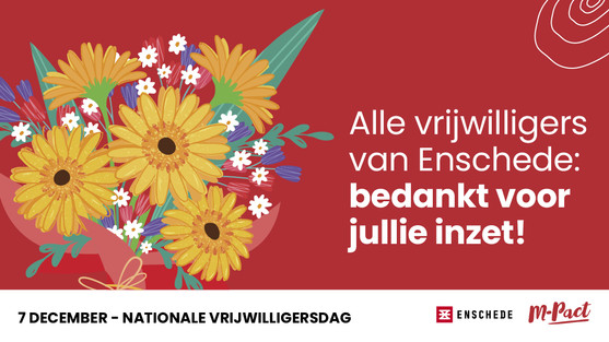 Dit jaar zijn bijvoorbeeld deze vrolijke posters met bloemen, in samenwerking met gemeente Enschede, in de hele stad te zien om alle vrijwilligers te bedanken voor hun inzet.